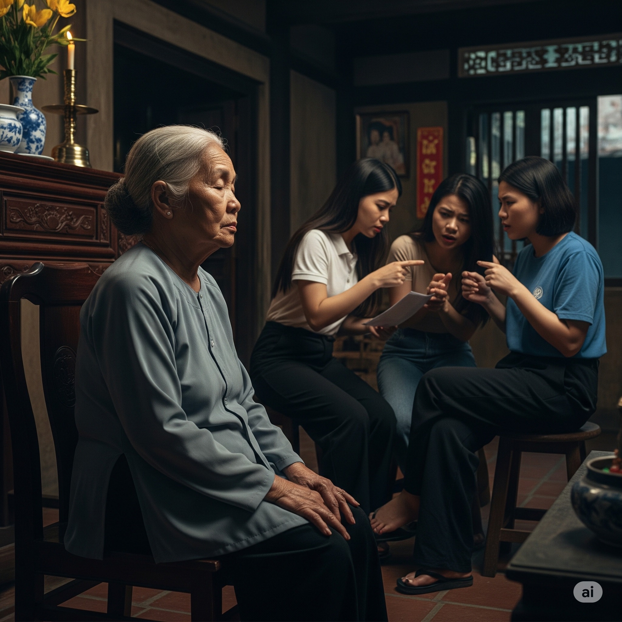“Giỏi lắm thì bà để lại di chúc. Mà không ai đọc nổi chữ bà run run đâu. Mai mình cứ chủ động ‘hướng dẫn’ là được.”