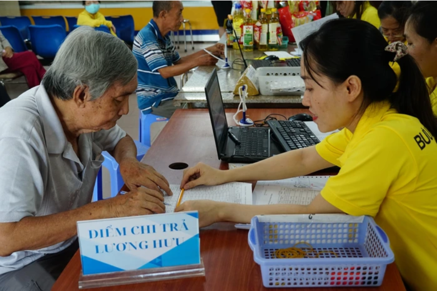 Chi trả lương hưu cho người dân. Ảnh. BHXH TP HCM