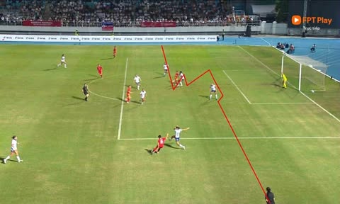 Phút 29 trận nữ Việt Nam vs nữ Philippines tại Chung kết bóng đá SEA Games 33, Việt Nam tổ chức tấn công rất tốt, bóng ra biên và được tạt vào cho Bích Thùy phía trong dứt điểm tung lưới đối phương.